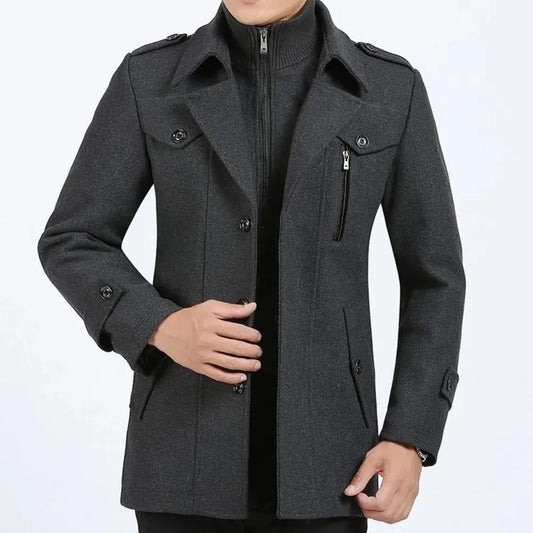 Herren Kurzmantel Zweilagig Revers- & Stehkragen Wind- & Wasserabweisend aus Polyester Anthrazit