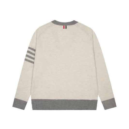 Cardigan V-Ausschnitt 4-Streifen Unisex aus Hochwertigem Woll-Mix in Cremeweiß-Grau